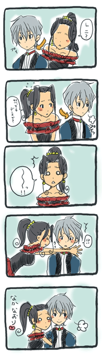 どうしたもんか・・・^^; 「アラビアのバラ」鑑賞しましたよぉぉぉぉぉ!!!!! 塩絡みさんがマリ姫が凄いと仰ってたので見てみたら・・・ うぉぉぉぉぉぉ!!ほ、ホントにナチュラルに手繋いじゃってるよこの子たち!!! しかも1度どころか何回も手繋いでるし、スキンシップ多すぎ・・・!!! けしからん、実にKESIKARAN!!! 普段は姫→マリアって感じだけど、アラバラはマリア→姫!!マリア、姫にちょっかい出しすぎだコノヤローvvv もう、この2人並んだら、いつも手を繋ぐがいいよ!!マリ姫B A N Z A I !!! その上、モトホシコンビも多々あって幸せ夢気分でしたvvvムフフvv いやでももうコレ、マリ姫祭りとかさ、おっ始めるゾ!!的な勢いなんですがwww そして、アラバラに続いて、第一回新春歌謡ショウも鑑賞v 常に一緒にいるモトホシ!!仲良しモトホシ!!にデレデレしてたら、姫が・・・ 「こういう時はやっぱりマリアさんでーすね」 「あの低く渋いイイ声で・・・」 とかいきなり言い出してお茶噴出しちまったよもう!!!← マリアいないのに、いきなりマリアの名前出すとは・・・さすが姫!!!ww ああもうヤバイ。マリ姫に脳内がヤラレてます。 ☆私信☆ 塩絡みさんv >お食事どころか、思い切ってその後まで行っちゃいなよ! その後と言うのは・・・飲みに行くということですね?←ぇ バーかなにかで2人で飲んで、酔ったかえでさん 何をするって・・・別に深い意味はありませんww >モトホシ5コマ あああああありがとうございます!! いや色々間違ってたり、めっちゃ落書きで申し訳ないんですが・・・! もう、この2人が可愛くてしかたなくって!! レニが機嫌が悪い(拗ねてる)のを見て姫が慌てまくってたら可愛いなぁvv とか、レニはレニで、姫を許したいけど素直になれなかったら可愛いなぁvv なんてww この子達の可愛さは反則です(≧∀≦*) >マックス&カイ ぎゃぁぁぁぁ!!! あ、ありがとうございます!! 2人見たとき変な声が出ました・・・!!! いや、実は密かに一人ベイブームが来ていてコソコソとカイを描いてたりしたのでw カイはホント良いとこ取りで・・・ 高乃さんファンなので、いとも簡単にカイに転んだのですが^^; 「これが・・・俺の愛だぁぁぁぁ!!!」には大爆笑でした← マックスは兎に角可愛くて!!! ベイの中で私の癒しでしたvvv愛さんの声!!めっちゃ可愛いですよねw あやめ&かえでとはまた違って大好きですvvv >カイの背中にマヨを注入 ちょっwww マジギレなカイと笑って逃亡するマックスとかめっちゃ描きたくなりました・・・!!! マックス危ないww ベイを見てコマ遊びって危険だな・・・wとかかなり思いました笑 そういえば、またアニメやるみたいですけど・・・キャラ変更あるんですかねー。うーん。